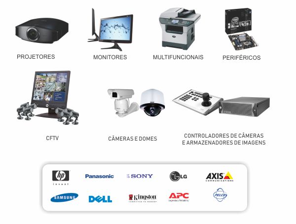 Computadores, Notebooks, Tablets, Impressoras, Multifuncionais, Câmeras Fotográficas, Cartões de memória, Projetores, Monitores, Hds ,Memórias, etc.